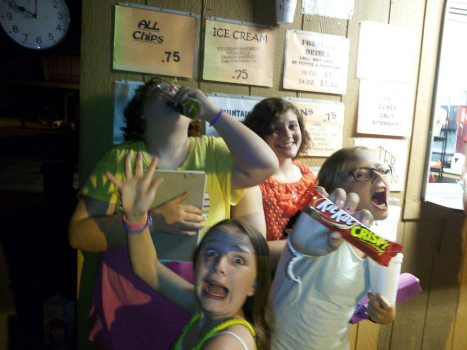 Greatly excited about snack time at the concession stand. LOL